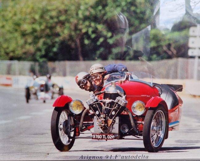 Ce couple d’acrobates sera présent au centenaire, au volant de ce trois roues Darmont